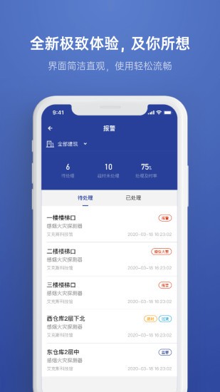 在维保小助手app中清晰看到待处理、超时未处理报警数量,很详细;