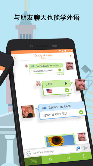 hello pal是领先的,能让你迅速实现与世界各国人们轻松进行纯外语对话的语言交流平台应用!不懂英语却想和老外用英语交谈?没问题!你甚至能和中国朋友用日语对话,即使你们都不懂日语!