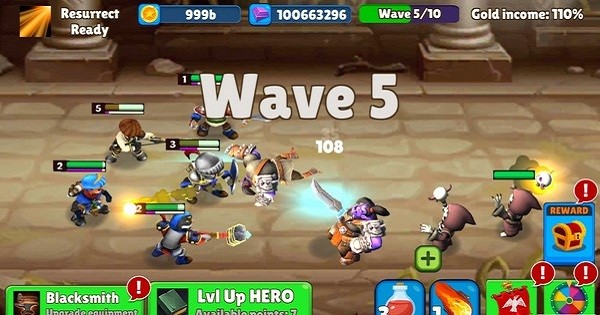探索自动战斗的美丽。在铁匠铺中升级英雄的装备,看着他们碾压成群的敌人