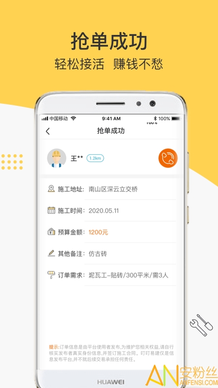 无论你是水电工、泥瓦工、木工、油漆工还是搬运工等等,在这里,你都可以找到你能干的活,语音实时播报,优配订单。