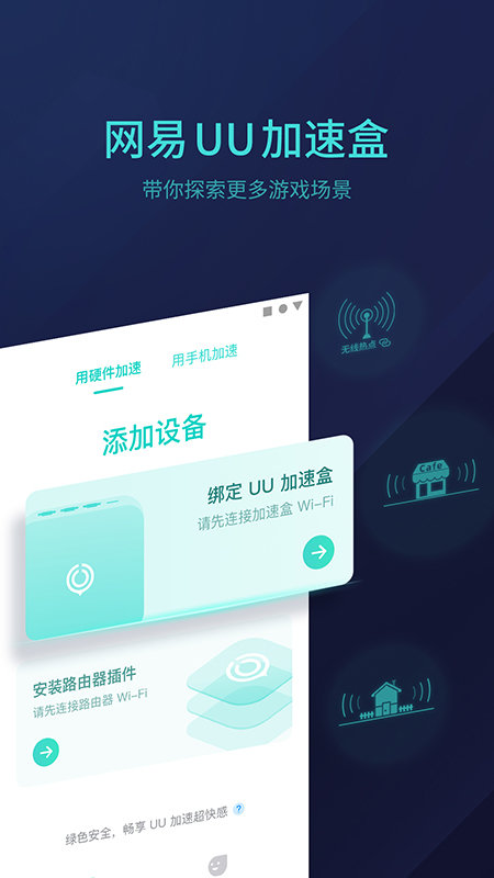 如果你购买UU加速盒,只需要连接盒子Wi-Fi,无需再次安装插件,完成绑定后即可进行加速!
