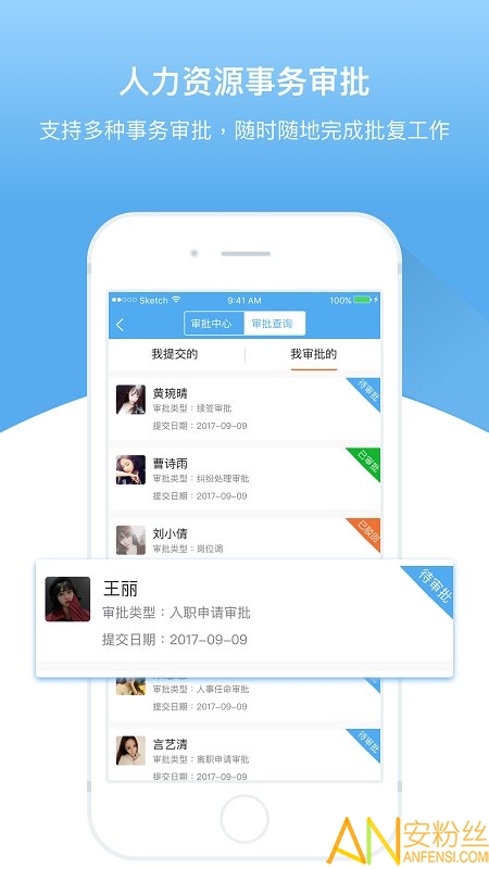 人力资源事务审批,支持多种事务审批,随时随地完成批复工作。还可以在线做工资,智能工资条,智能工资条实时查,摆脱传统工资条。