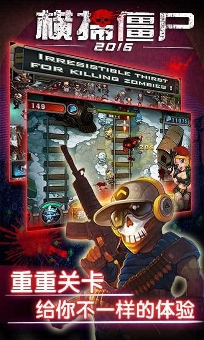故事背景:西元2016年,人类被邪恶博士认为是物种进化的最大阻碍。作为最完美的物种,僵尸才是这个世界的主宰。他所培植出来无穷无尽的僵尸军团使整个地球陷入了危机。《横扫僵尸2016》是射击塔防游戏.带上耳机,感受枪弹和血浆的交响曲!联合政府已经无力抵抗,作为残存的雇佣军,战斗是你唯一的出路,弹药是你活下去的唯一希望。
