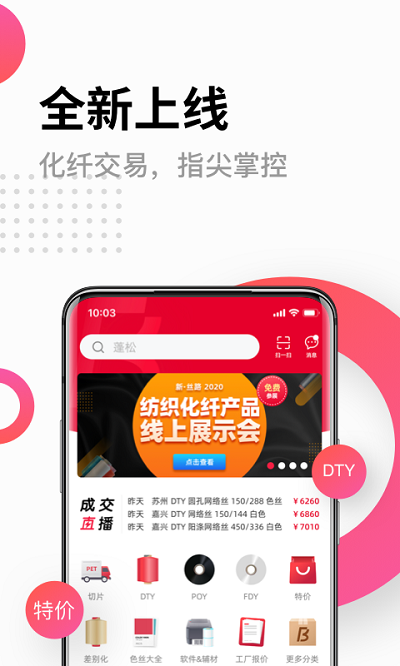化纤邦app这是一款化纤行业交易购买平台,纺织化纤产品线上展会直播,随时掌握最新物料,每天都会有最新报价,轻轻松松就能获取到,详细的数据记录分析,盈亏一目了然,还有买卖广场,需要的用户就赶快下载吧!