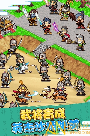像素风格的三国题材策略经营对战游戏,为了开始发展属于自己的实力,玩家需要经营一个三国的基地,招募更多的三国英雄为你征战,发展农业和商业,让更多的旅人来这里进行贸易。创新独特的房屋建造、土地改革、道路规划和商店建造等模拟经营要素,策略多变的士兵、武将阵容战术调控,辅以有趣的武将修行、装备锻造和特殊技熟习,各种有趣玩法随你挑选。经营村庄,搭配兵种,扫平一切敌人,创造属于自己的天下!