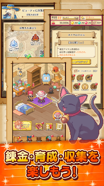 您可以使用收集的材料通过炼金术制作物品!收集各地可用的参考书,增加食谱数量!通过升级学习技能。你选择哪一个取决于你在罕见的“大获成功”的情况下,您可以创建完全不同的项目!
