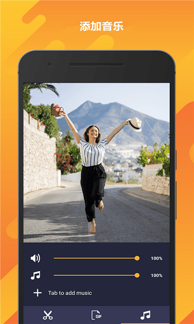 同时也是音乐视频制作器,配合您视频制作的背景音乐要求,可以自己进行添加和剪辑音频。在手机存储器中将自己的音乐添加到视频中,调整原始视频音量和调整歌曲的音量,使它们完美的融合达到您想要的效果!