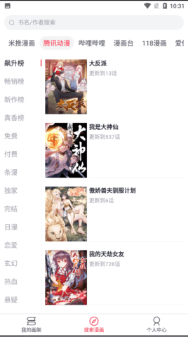 泼辣漫画是一款非常好用并且内容资源非常丰富的漫画软件,这里有着海量的漫画书源,所有的漫画资源都进行了详细的分类,比如有国漫榜、免费榜、人气推荐等等,内置数十万正版漫画供你挑选,并且有着详细的分类排版,想看什么漫画一目了然,同时内置强大的搜索引擎,可以帮助大家在书源中进行检索。让你拥有非常多的漫画观看选择,漫画图象画质很清晰,感兴趣的话就和你的小伙伴来一起下载体验吧。