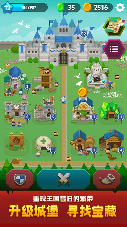 3、重建王国,保留和收集强大的英雄,挑战其他王国,并赢得胜利的奖励;