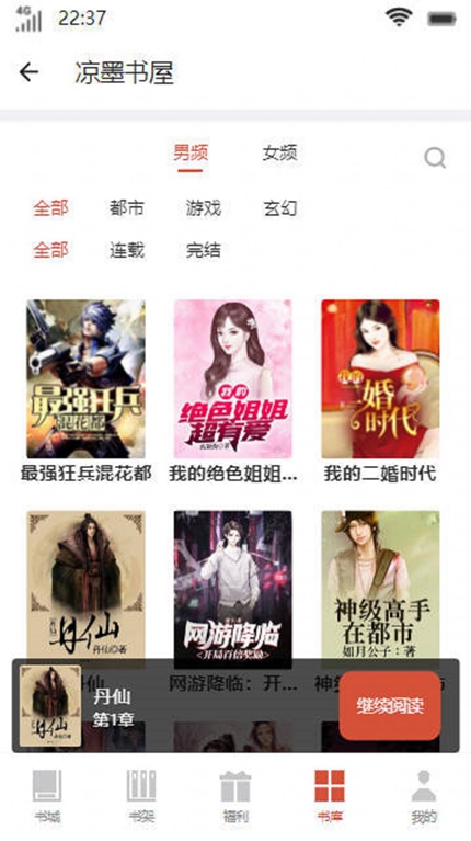 3、进入书店页面,立即查看提供的各类小说分类列表,查询搜索小说;