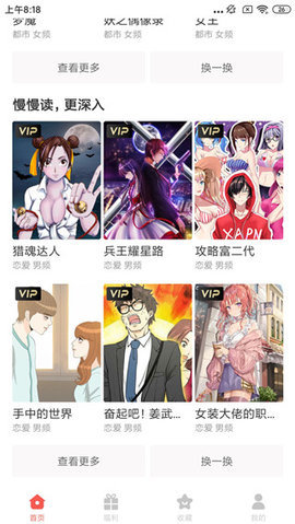2、推荐热门漫画资源内容,通过详细分类可以更好的找到自己喜欢的内容;