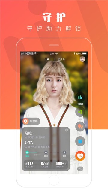还专门开设了明星榜单,每个明星都是保持虚拟形象,大家可以守护ta,关注ta;