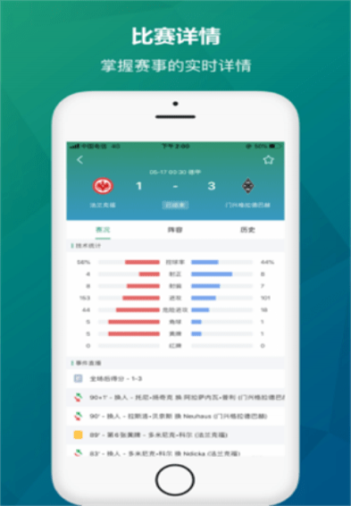 3、软件还能时刻为大家掌握详细的赛事数据,清晰的赛事图为大家全面展示赛事的众多情况,让大家预测更加准确。