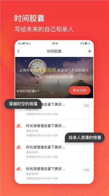 可以使用时间胶囊跨越时空给亲人一个惊喜