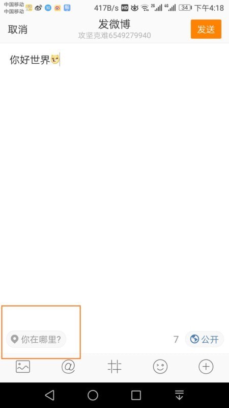 2、在编辑界面的左下角,显示地理位置,点击此小xx
