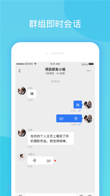 群组即时会话,进行更好的私密聊天;