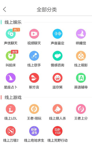 首先教大家第一种方式,如图所示,在首页点击【查看全部】,在这里可看到所有的品类,选择自己喜欢的品类点击进去,就可以看到美女宝宝列表啦。选择好自己的心动宝宝,点击进去,如下图所示,这个页面可以选择试听美女音频,也可在线跟美女聊天哦。在确定后,点击右下角的【下单】就可与心动美女嗨聊啦。