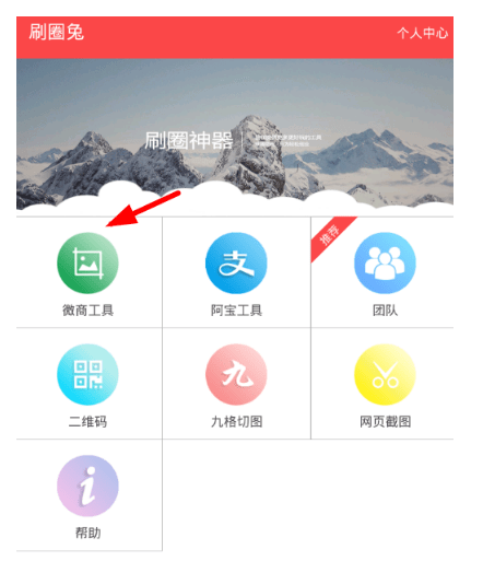 1、其实在刷圈兔里,一般用户用得最多的就是自己设置微信、支付宝金额来炫耀,只需要点击“微商工具”或“阿宝工具”就可以进行设置了。