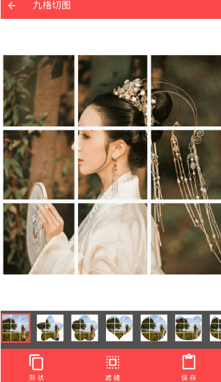 4、而且通过下方“九宫格切图”功能,还可以帮助你编辑手机本地的图片,将其编辑为九宫格的形状。