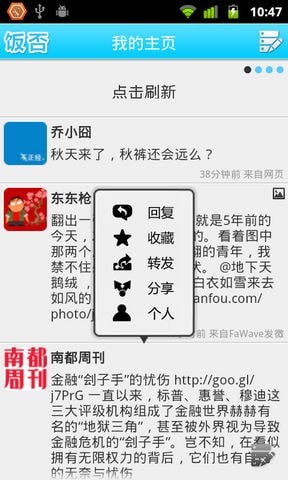 饭否是国内起步最早的微博网站,在微博已成主流的环境下饭否也开发了手机客户端,这款安卓饭否客户端软件可让你不经过网页就能快速发布微博信息。