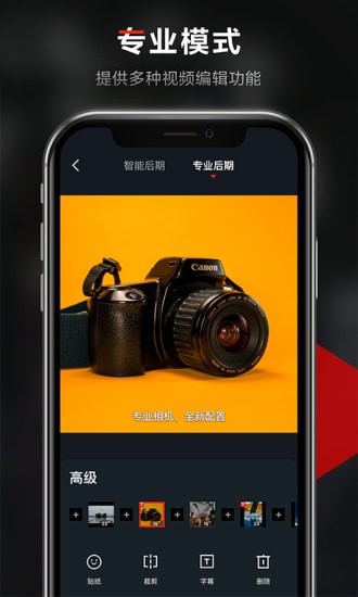 1. 智能模式:快速生成,立等可取;专业模式:修修剪剪,精美成片。