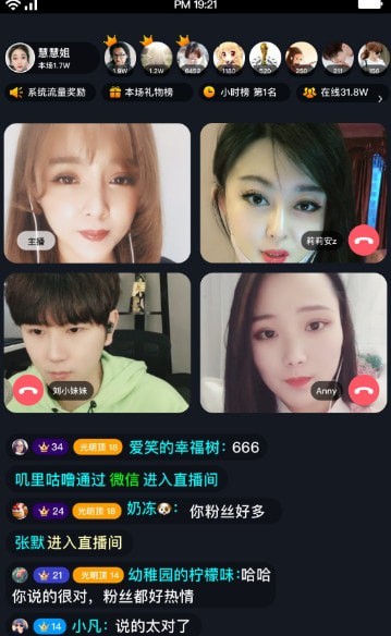 支持直播间内最多四人语音或视频连麦;支持最多两个主播间视频连麦互动、PK。