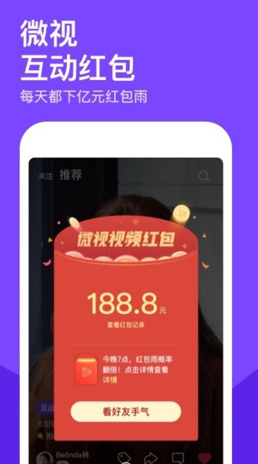 其实,短视频行业出现这种变化是必然事件。原因在于短视频具备社交传播价值,既能为用户拓展朋友圈,也能丰富其社交方式,因此用户对其产生了社交需求。例如微视在春节期间推出的视频红包功能,能够以新型的发红包方式为用户的社交圈增分,所以曾一度在微信群、QQ群中霸屏。