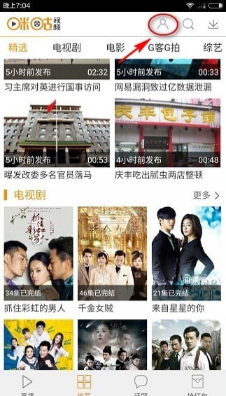 点击打开【咪咕视频】然后点击右上角的【小人】;
