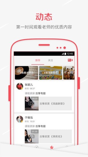 短视频:支持弹奏音频、视频录制,即兴演奏,秀出个人音乐,与众多音乐爱好者沟通交流