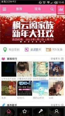 1、打开【移动练歌房】,点击右上角的【图标】进入到我的房间。(如下图)