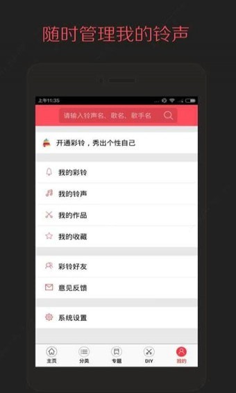 手机来电、短信、闹钟铃声一键设置。同时支持三大运营商彩铃购买、赠送,让TA爱上给你打电话!!