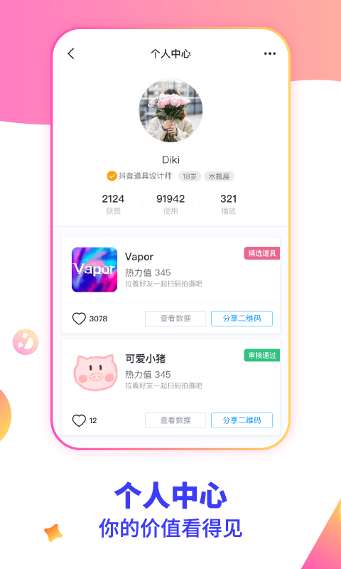 3.个人主页新增数据反馈,查看特 效等级和收益