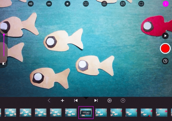2、打开app之后在项目管理器中点按’+‘图标可开始你的首个项目。点按“捕获”图标为影片添加一些图像。开始拍摄定格动画。每次以极小的增量一点一点移动每个人物,重复动画顺序直到动作步骤完成。