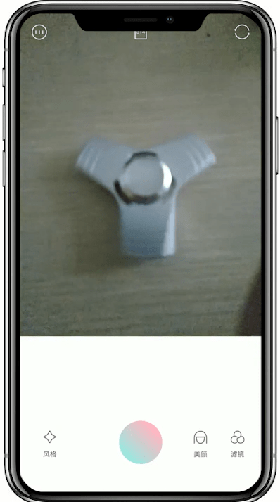 2、出于拍摄阶段时,下方的彩色圆圈按钮会变空白圆圈,并且圆圈上会有类似进度条的提醒;