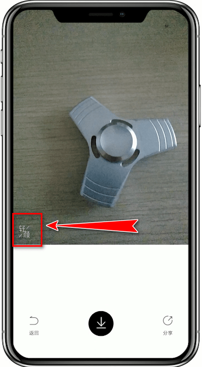 1、首先打开轻颜相机app,按住下方的彩色圆圈按钮不松即可拍摄视频;