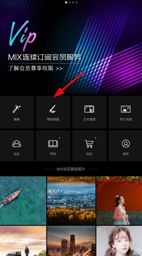 1、先在本站或在下载并安装好MIX,然后打开MIX,在首页点击【局部修整】;