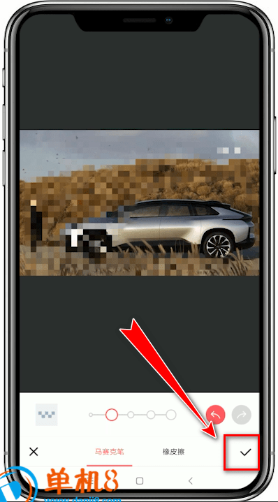 5、这样就给图片打上了马赛克,觉得不错就点击右下角的勾推出编辑模式,然后保存照片就可以了。