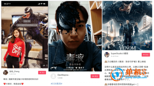 在美图秀秀社区,COS毒液活动不仅吸引了小姐姐们的参与,更“炸出”了大量漫威男性粉丝。漫威死忠粉在这里用AR萌拍、剧情安利等方式为《毒液》打call。图文并茂、真情实感的优质ugc内容达成有效安利,为《毒液》赚足了人气。