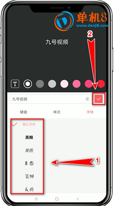 5、输入文字后,还可以在下方设置字体等样式,设置完成后,点击文字输入框右边的勾;