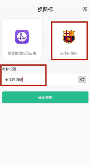 选择要替换的应用,选择要换的图标,还可以对这个应用重新命名,这里把华为系统浏览器图标换成巴萨队徽。