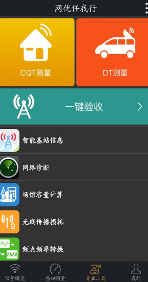 网优任我行您还在为写网优报告发愁吗?您还在抱怨笨重的测量设备吗?您还在为站点验收流程不规范恼火吗?网友任我行帮你忙专业专业快捷的CQT、DT测量支持专业数据管理与回放支持800M及LTE全频段4G信号测量智能验收现场图像智能采集规划参数、站点配置、经纬度、方位角智能获取匹配一键验收优化报告智能生成实用容量计算器、天线传播损耗计算器、频点换算器、网络诊断,多种实用优化工具免费用共享社区最好用的网优工具,做最专业的网优人,进最和谐的网优社区。