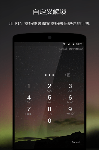 快速启动应用:无论是在路上,在家还是在工作,《Next Lock Screen》可显示基于你的位置显示最常用应用,以便快速启动。
