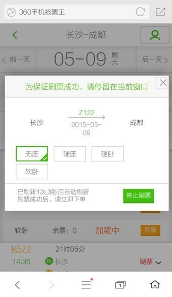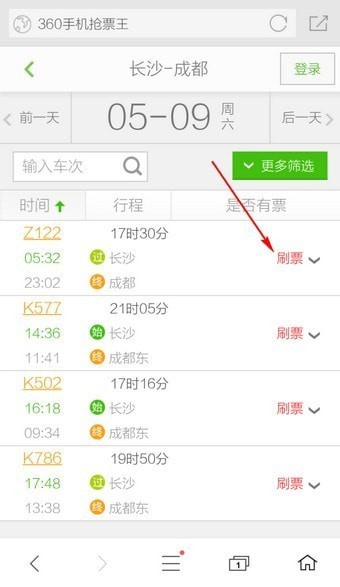 360手机浏览器怎么抢票?