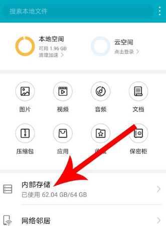 打开“文件管理”后点击“内部存储”