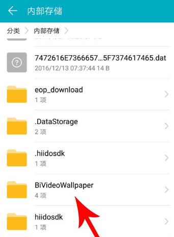 滑动过程中找到bivideowallpaper文件夹并点击