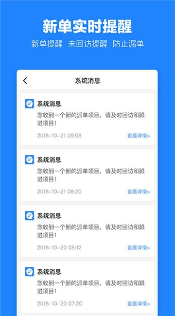 【实时接单】有新的派单项目,手机上会实时收到提醒,可以快速回访业主。