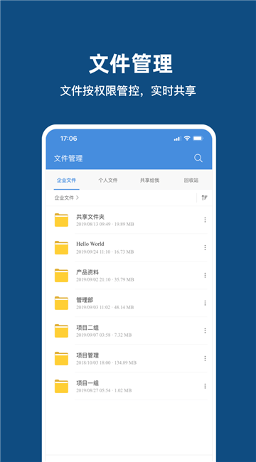 云端文件权限管控、9项文件操作权限应用、精准文件同步、分级回收站管理。