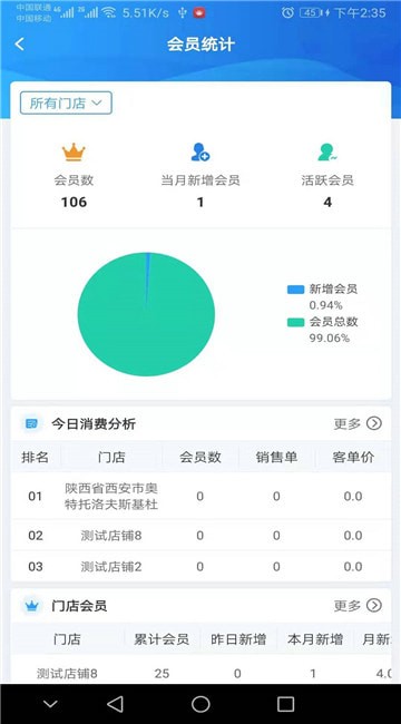 2、新增会员,智能统计门店新增会员的情况,系统的帮助用户记录新增会员的人数;