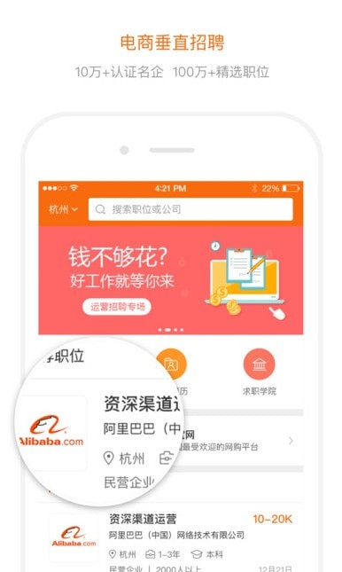 淘工作app百万电商人才需求库,淘工作app打造专属人才自库,人才精准匹配。淘工作app大数据智能推荐,奖励制积分体系,免费畅享高阶服务。