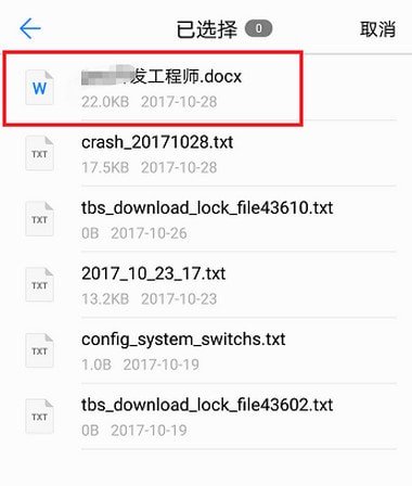 第五步进去手机文档界面之后,选择要上传的简历,如下图所示: